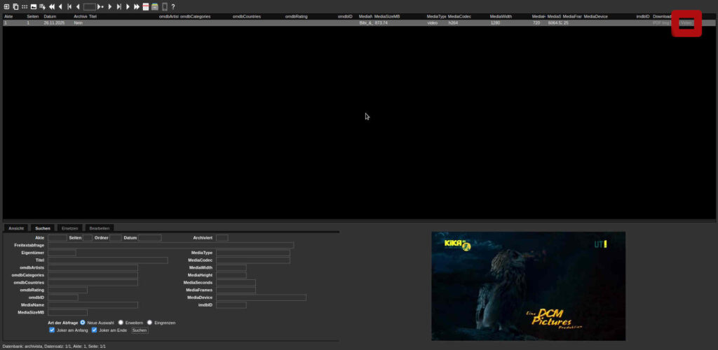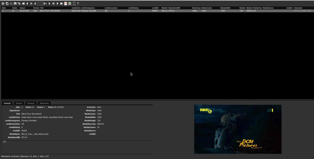 Bevor ich meine Sammlung mit ArchivistaDMS erstellt habe, hatte ich durchaus Versuche mit Kodi und Plex gemacht. Leider musste ich erkennen, dass diese Systeme alle über die Dateinamen bzw. eine mehr oder minder fixe Ordnerstruktur verlangen. Dies erscheint mir wenig zielführend. Als Beispiel sei der Film «¿Bin ich schön?» von Dorris Dorrie angeführt. Derartige Dateinamen bereiten früher oder später Probleme, wenn das Archiv auf Dateiebene gehalten wird.